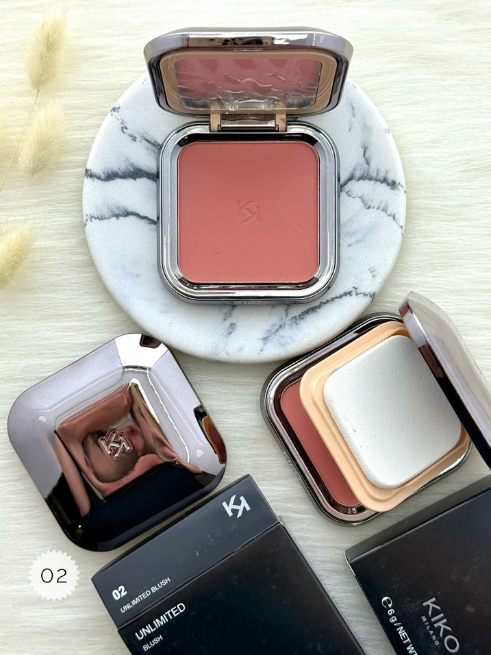 Unlimited 02 numara allık, doğal görünüm için hafif bej renkte ve pürüzsüz dokudadır. Sünger aplikatör ve kompakt aynası bulunur.