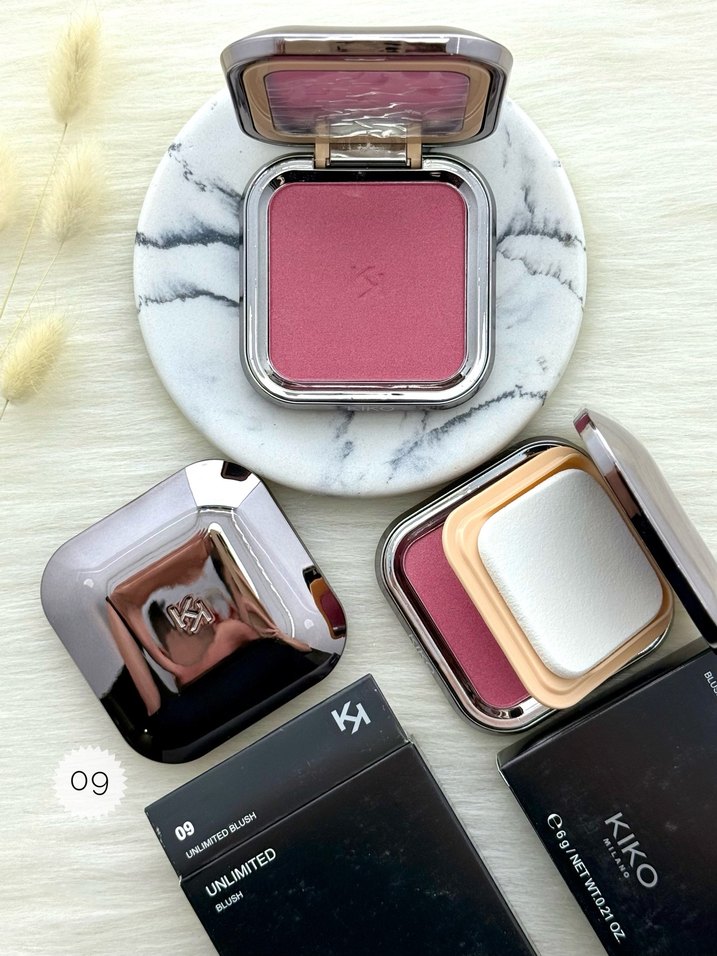 Unlimited pudra allık 09 numara, açık pembe renk sunar. Kompakt kutuda ayna ve aplikatör sünger bulunur.
