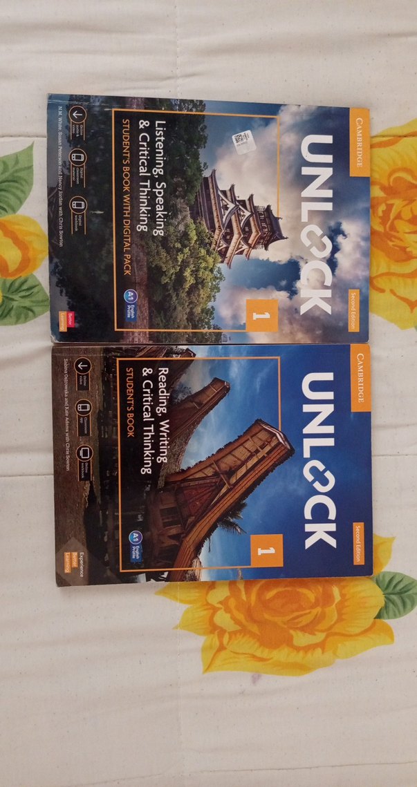 Unlock 1 Öğrenci Kitapları, dinleme, konuşma, okuma ve yazma becerilerini eleştirel düşünme ile geliştirir. Dijital paket içerir.Hazırlıkta Kullanmıştım etkinler vs. Çözülü fakat kodları hala duruyor bi tanesini kazıdım fakat hiçbirini kullanmadım