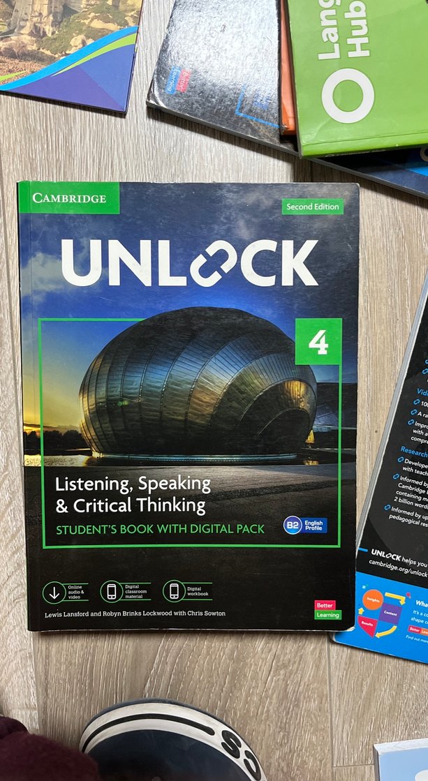 Cambridge'in Unlock 4 kitabı, dinleme, konuşma ve eleştirel düşünme becerilerini geliştirmek için dijital paketle birlikte sunuluyor.