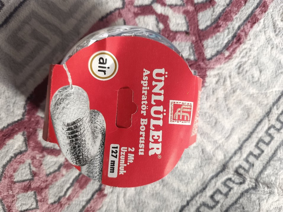 Ünlüler aspiratör borusu, 127 mm çapında ve 2 metre uzunluğundadır. Kırmızı renkte düz tasarıma sahiptir.