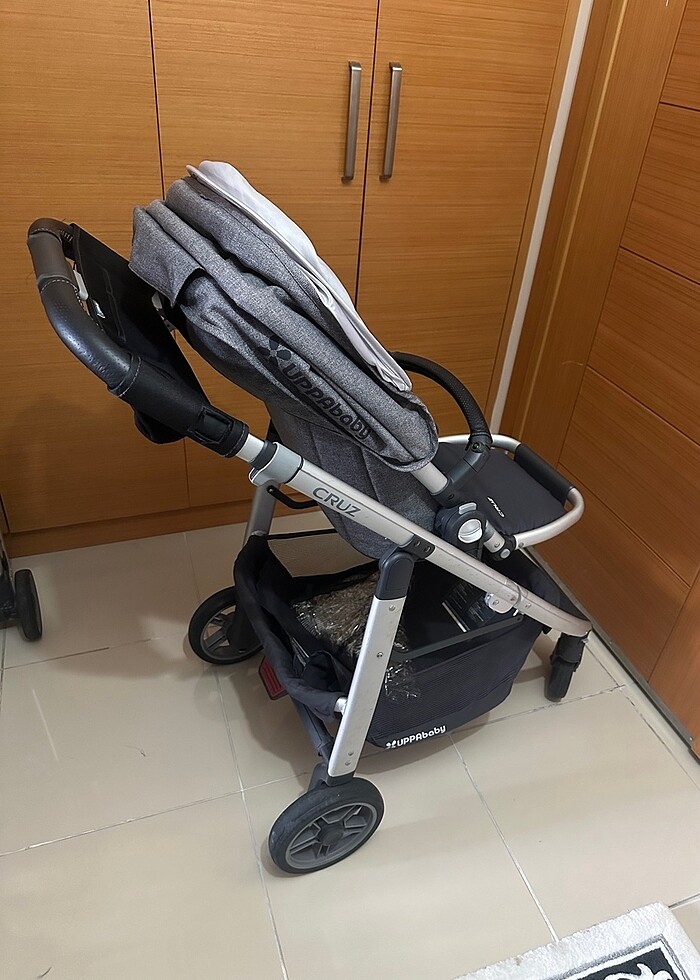 Uppababy markasının Cruz modeli, çok temiz durumdaki bebek arabamız satılıktır. Şık, kullanışlı ve kompakt bir arabadır. Herhangi bir sorunu, eksiği yoktur, sıfır almıştık ve ilk sahibiyiz. Çocuğumuz büyüdüğü için satıyoruz. Bebek koltuğu hem öne hem de size doğru oturtulabilir, çift yönlüdür. Koltuğun sırtı ve ayak kısımları bir kaç kademe yatırılıp dikleştirilebiliyor. Güneşliği ekstra uzatılabiliyor. Katlaması, kaldırması çok kolay ve hafif bir arabadır. İttirme sapı uzayıp kısalabiliyor. Altındaki sepeti, başka arabalara göre oldukça büyük ve bebekle alışverişe giderken çok işe yarıyor. Üst kısmında bebeği yukarıdan görmeyi sağlayan açılıp kapanabilir bir kumaş pencere var. Önde, her arabada olmayan kullanışlı bir ön bar var. Araba kolay manevra yapar, itince çok kolay gider.