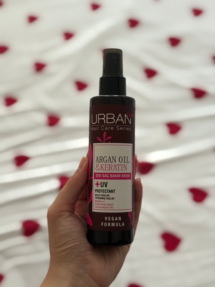 Urban Argan Oil & Keratin saç bakım kremi, vegan formülüyle UV koruması sağlar ve saçı besleyip korur.
