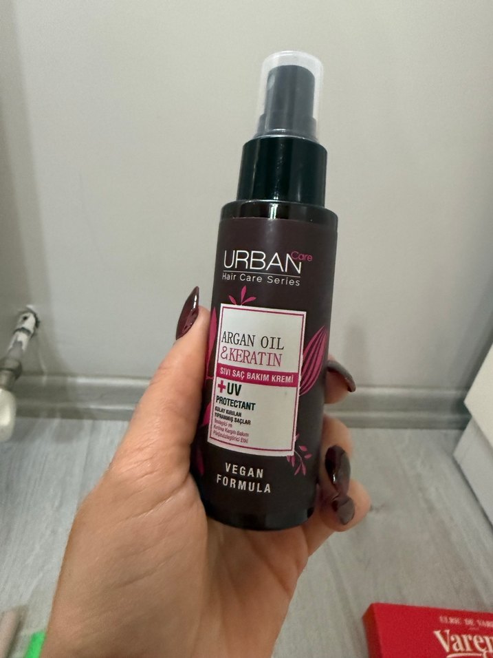 Urban Argan Oil & Keratin saç bakım kremi vegan formüle sahip olup UV koruması ve besleyici bakım sağlar.
