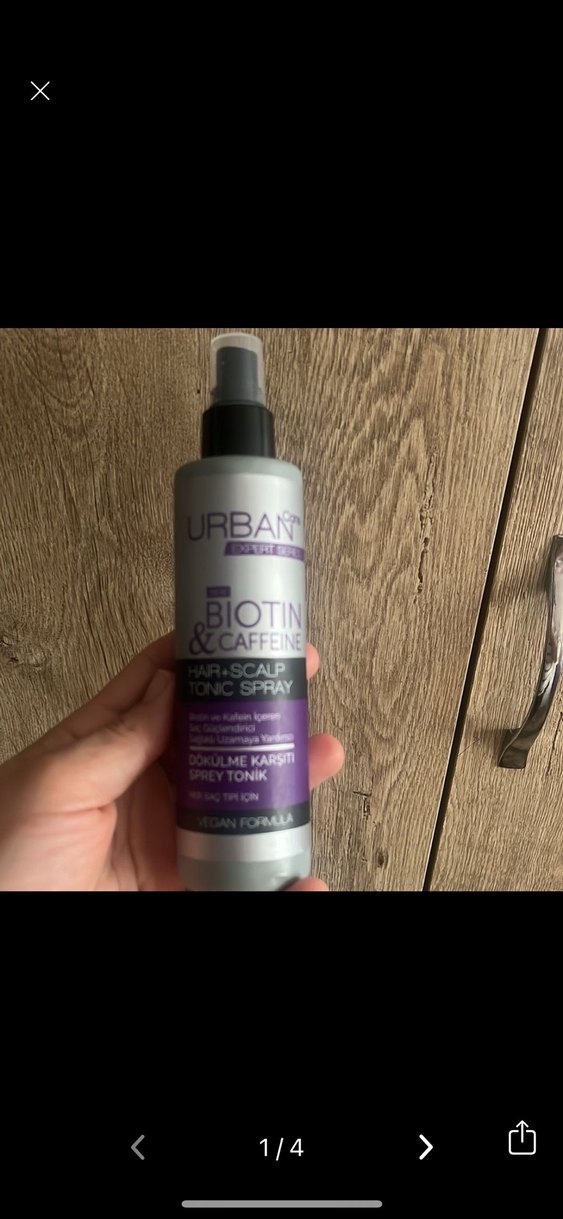 Urban Biotin & Kafein içeren vegan formüllü saç ve saç derisi spreyi, dökülmeye karşı koruma sağlar. 3 kere belki sıktım Yeni