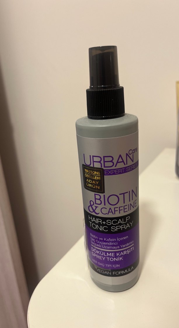 Urban Biotin & Kafein içeren saç ve saç derisi toniği, saç uzamasına destek olur ve dökülmeye karşı korur. Vegan formüle sahiptir.
