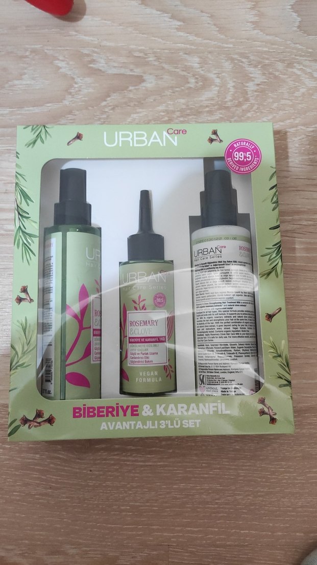 Urban Care biberiye ve karanfil özlü saç bakım seti, %99,5 doğal içerikli üçlü avantajlı set. Saçı besleyip canlandırır.