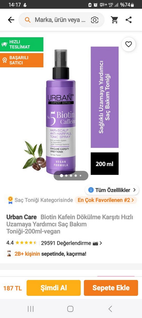 Urban Care Biotin Kafein içeren vegan formüllü saç bakım toniği, saç dökülmesini önlemeye ve sağlıklı uzamaya destek olur. 200 ml sprey.