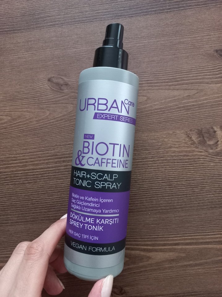 Urban Care Expert Series Biotin & Kafein içeren saç ve saç derisi tonik spreyi, saç dökülmesine karşı korur ve sağlıklı uzamaya destek olur. Vegan formüldür.