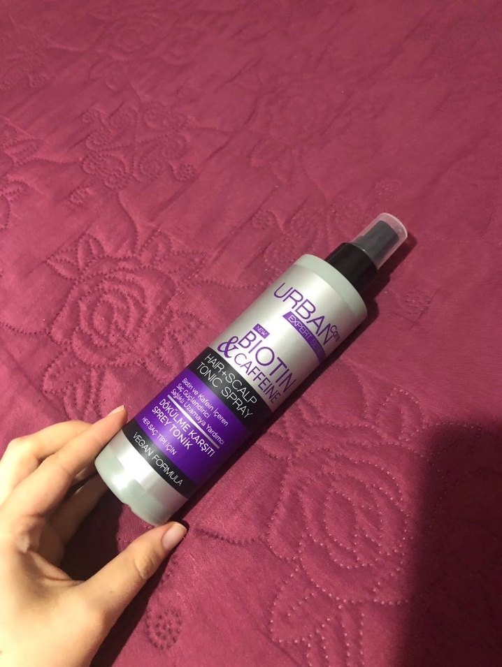 Urban Care Biotin & Kafein saç toniği spreyi, saçları güçlendirmeye ve dökülmeyi azaltmaya yardımcı olur. Sprey başlığı ile kolay uygulanır.