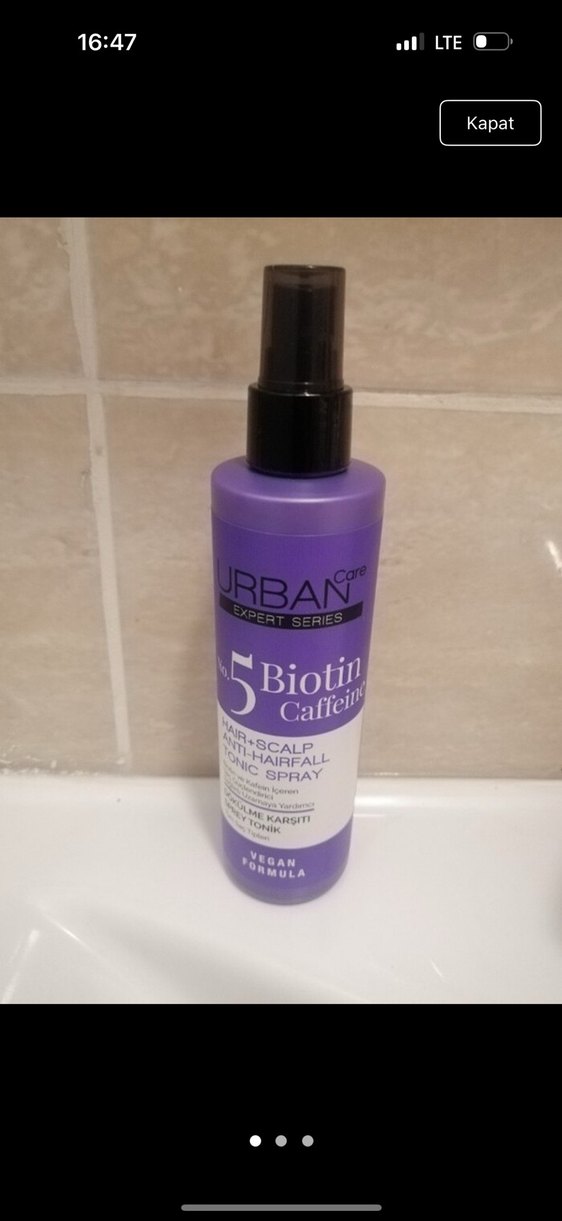 Urban Care Biotin ve Kafein içeren saç spreyi, saç derisini destekler ve saç dökülmesine karşı yardımcı olur. Vegan formüllüdür.