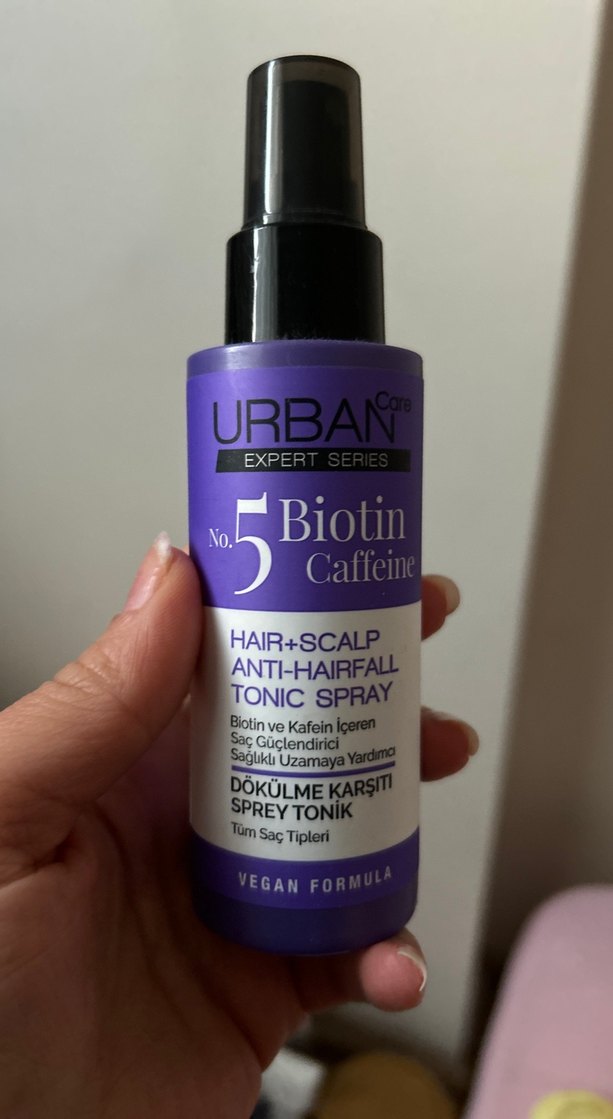 Urban Care No.5 Biotin Kafein içeren saç ve saç derisi spreyi, saç dökülmesine karşı korur, saçları güçlendirir ve sağlıklı uzamaya destek olur. Tüm saç tipleri için uygundur. Hiç kullanılmamıştır
