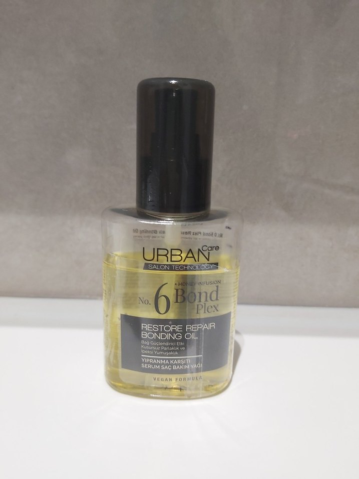 Urban Care Restore Repair onarıcı saç bakım yağı, vegan formülü ile saçı onarmaya ve korumaya yardımcı olur. görseldeki gibidir