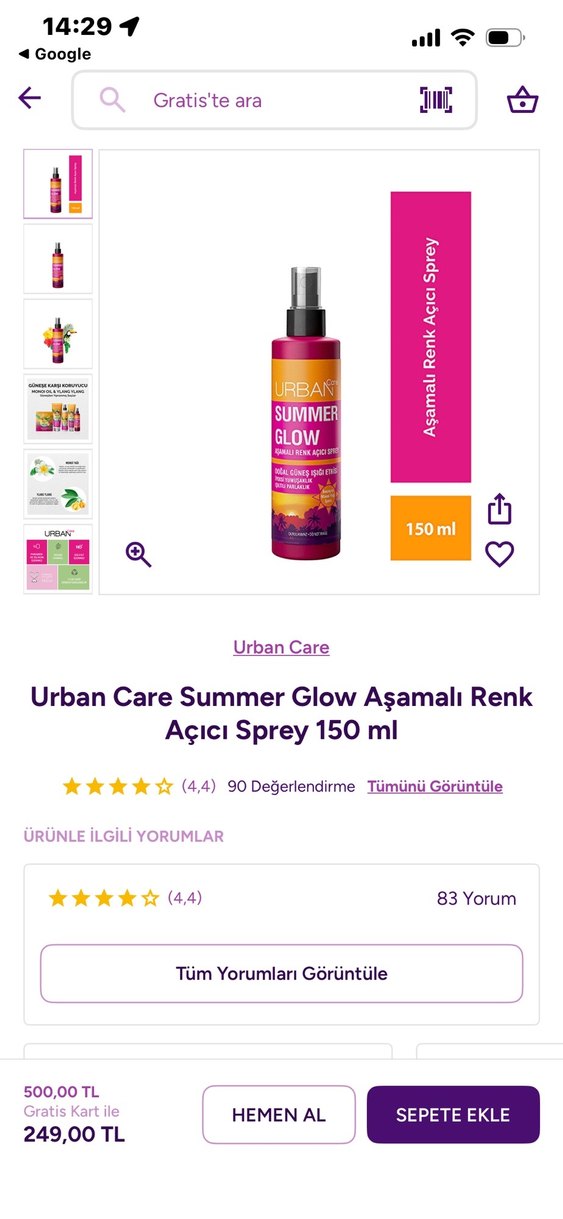 Urban Care Summer Glow, 150 ml sprey şişede aşamalı olarak saç rengini açar ve parlaklık kazandırır. Son görselde ne kadarının kullanıldığını belirttim Gratis’ten alınmıştı