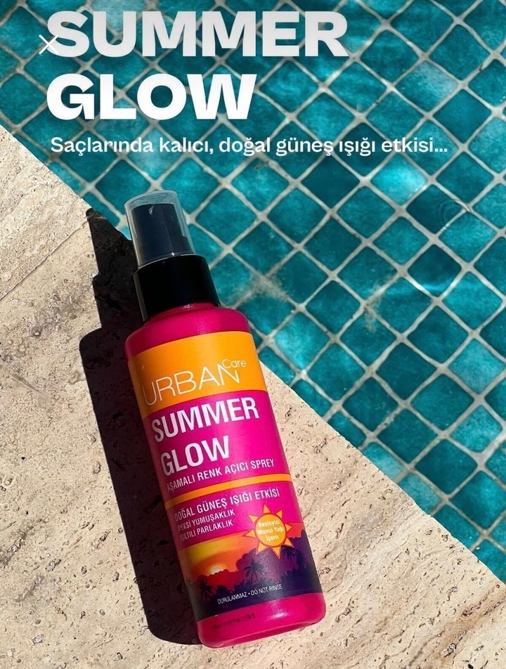 Urban Care Summer Glow sprey, saçlarda kalıcı, doğal güneş ışığı etkisi sağlar. Saçı yumuşak ve parlak tutarak renk açar. ☀️
