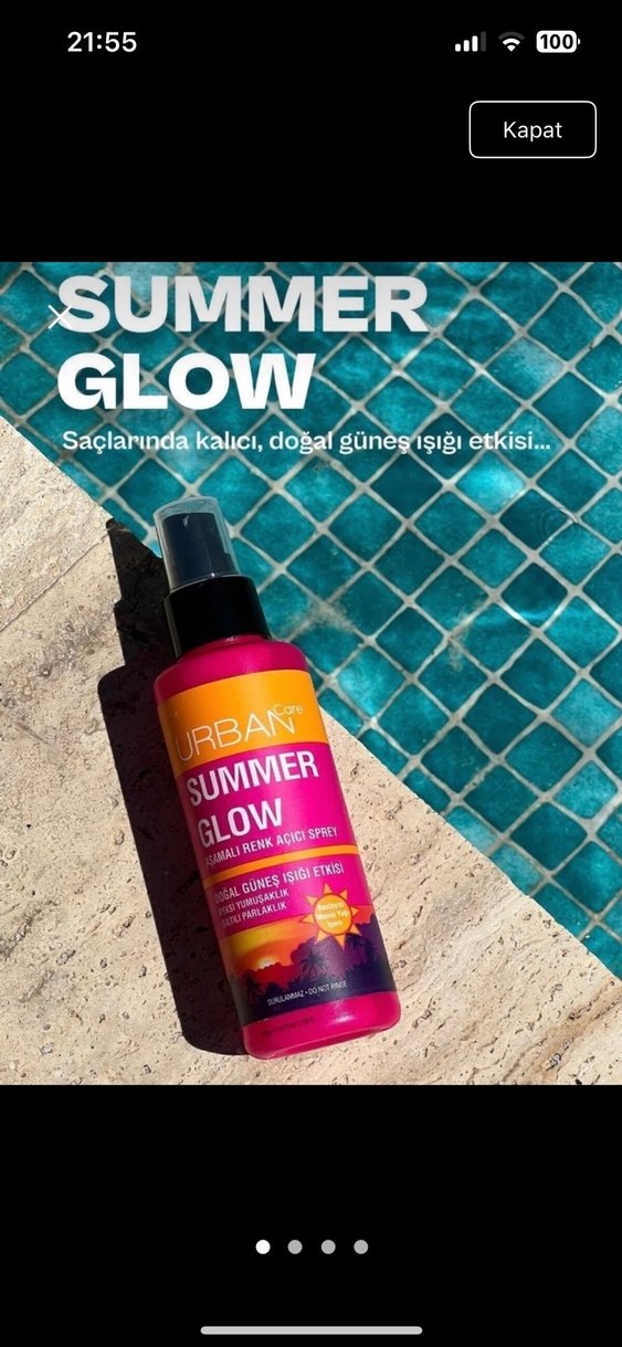 Urban Care Summer Glow sprey, saçlarda kalıcı ve doğal güneş ışığı etkisiyle renk ve parlaklık sağlar.