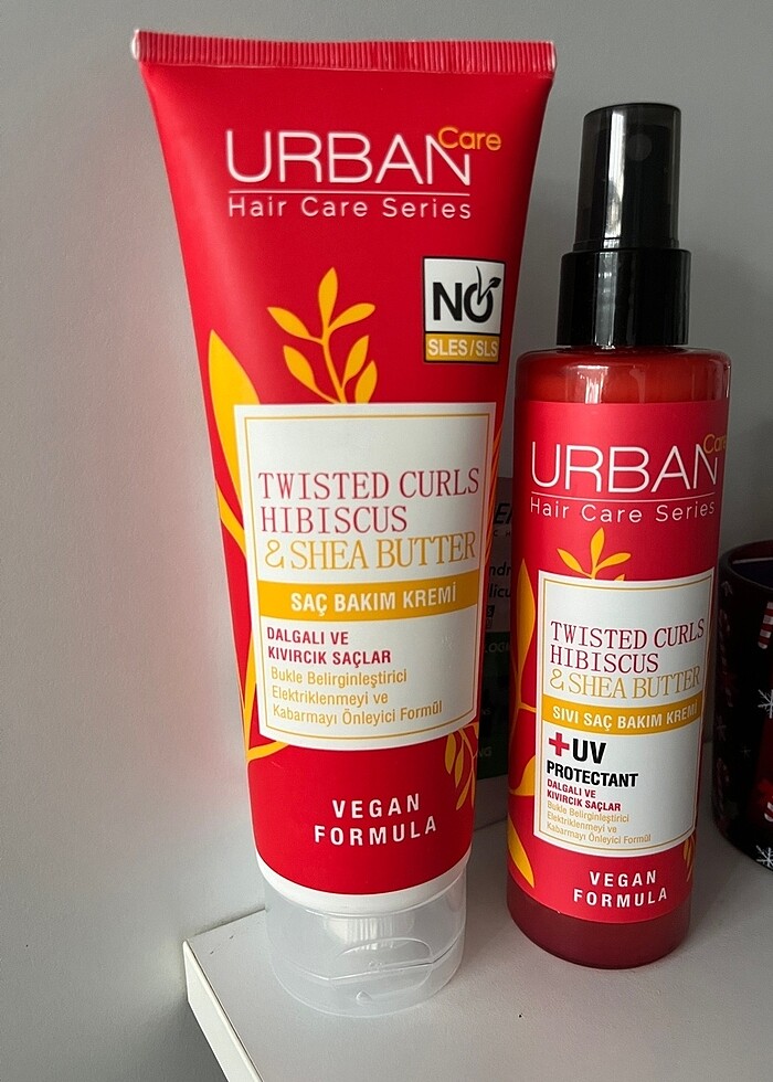 Urban care twisted curls saç bakım kremi ve saç bakım spreyi kıvırcık saçlar için. Ürünler Watsonstan iki hafta önce alınmış olup krem bir kere sprey iki kere kullanıldı.