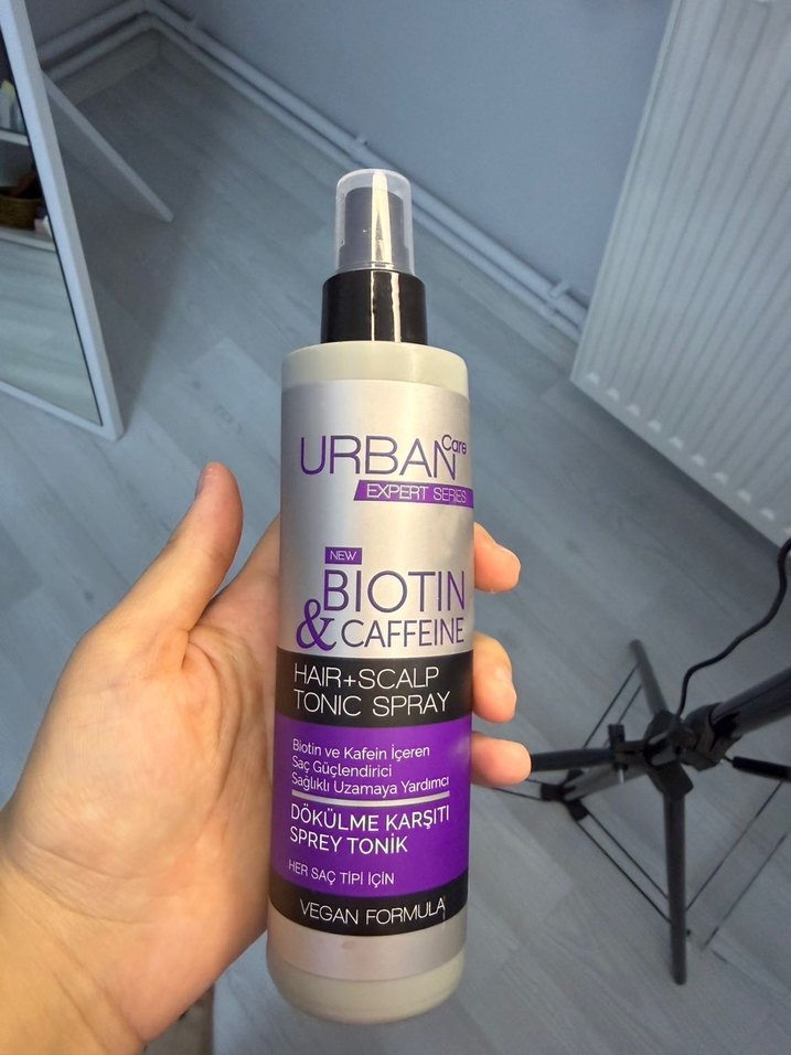 Urban Expert Serisi Biotin ve Kafein içeren vegan formüllü saç ve saç derisi spreyi, saç dökülmesine karşı yardımcı olur. Tüm saç tipleri için uygundur. Yarısından fazlası dolu.