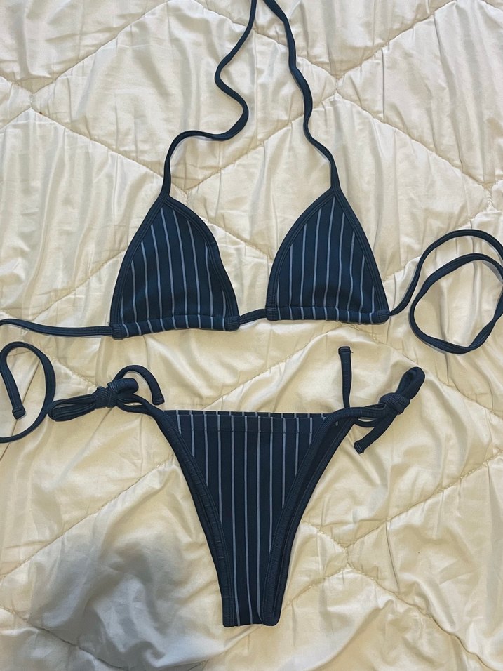 URBAN Lacivert Çizgili İp Askılı Bikini