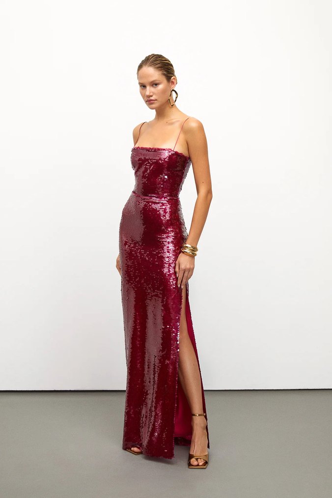 Urban Muse Bordo Payetli Uzun Abiye Elbise