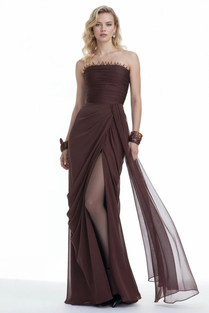 Urban Muse Kahverengi Drapeli Uzun Abiye elbise