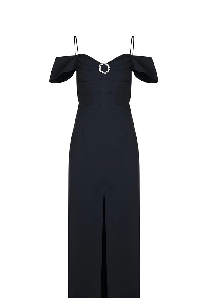 Ürün 1 defa giyildi herhangi bir sorunu yoktur. S bedendir. Broşu çıkartılabiliyor . Arkadan fermuarlı . Drapeli göğüs, yandan balen destekli. Saten astarı var içinde . Top krep kumaş .