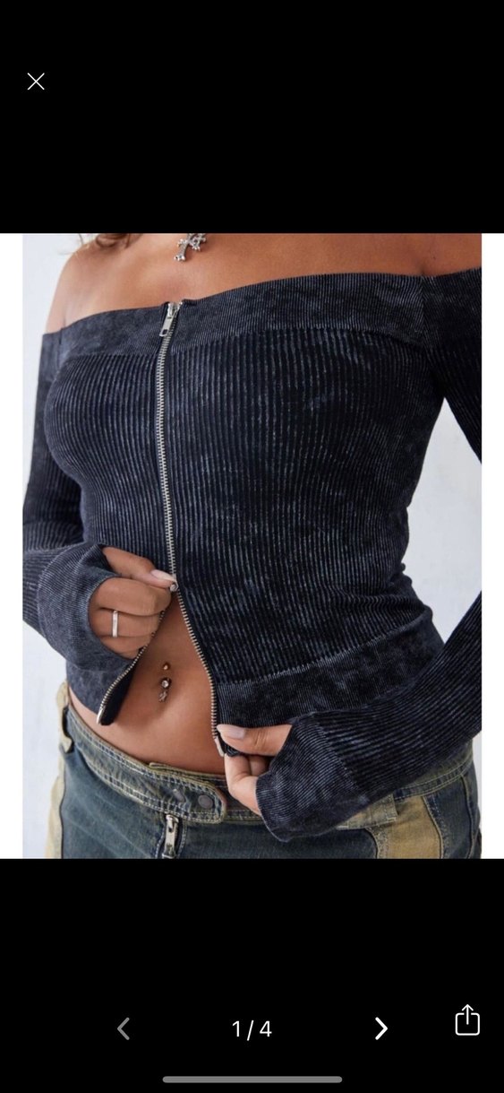 Siyah, straplez yaka, uzun kollu, önden fermuarlı, kısa boy mini denim bluz. Koyu renkli batik desenli, sokak modasına uygun dış mekan kullanımı için ideal. Sadece 1-2 kez kullandım yepyeni S beden fakat bence xs -s beden demek daha uygun. Ertesi gün kargo ürün likralıdır.