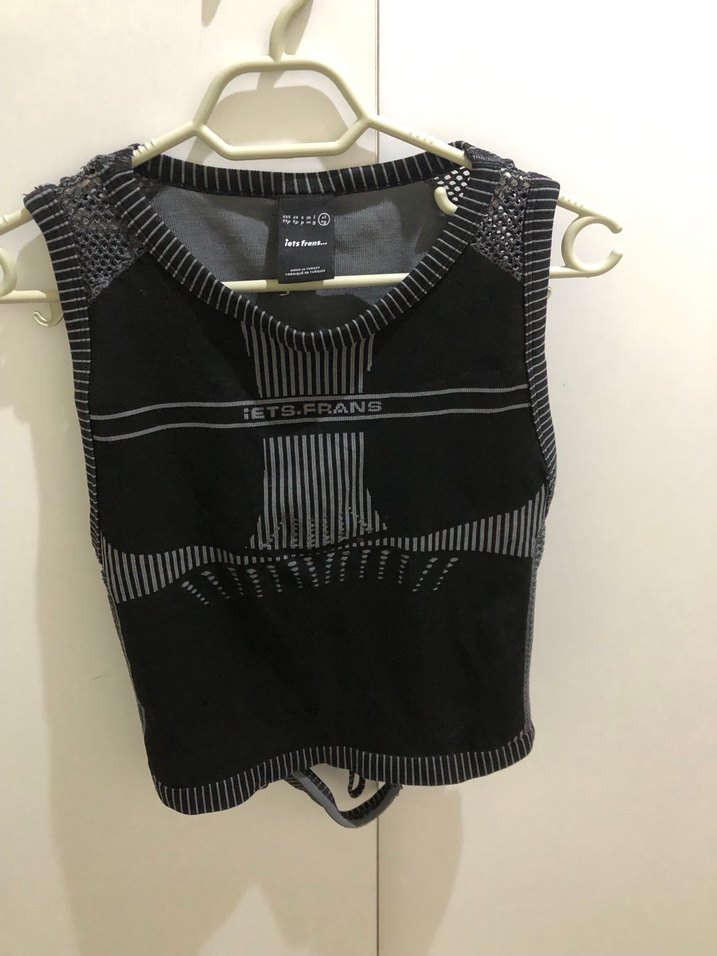 Arkasında pencere dekoltesi var. Orijinal ürün, etiketi de var zaten. Ben kullanmadım. m-l-xl bedene olur. Esneyen kumaşı var. Siyah kemer detaylı, kısa mini boy, straplez kesim ve sentetik kumaştan yapılmış, fitted kesim goth tarzında atlet.