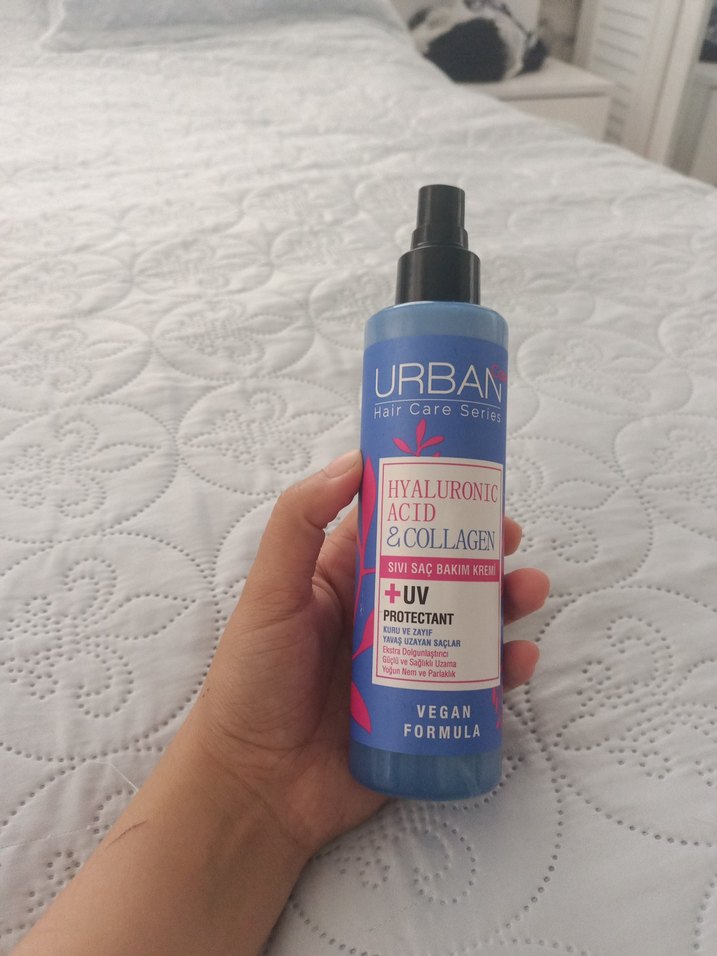 Urban saç bakım kremi, hyaluronik asit ve kolajen içerir. Sıvı bakım sağlar ve UV koruması sunar. Vegan formüldür. kapağı kaybettim