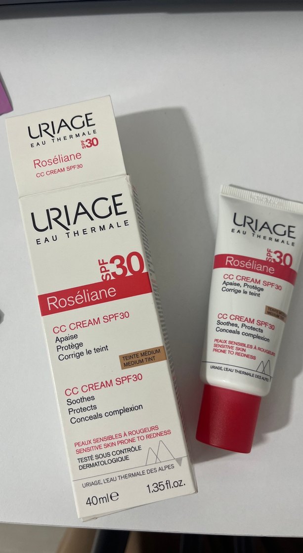 Uriage Roséliane CC Krem SPF30, açık bej tonunda, cildi yatıştırır, korur ve teni eşitler. Kızarıklığa meyilli hassas ciltler için uygundur. Yeni aldım bir kere yüzümde çok azıcık denedim ama ten rengime uymadı beyaz tenliyim bu yüzden satıyorum