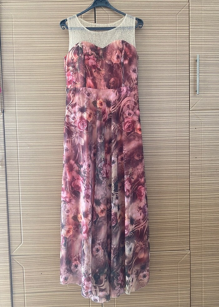 Şifon abiye kloş , ölçüleri fotoğrafda mevcuttur. Şık uçuş uçuş abiye ,kontrol ederken fermuarı bozuldu
