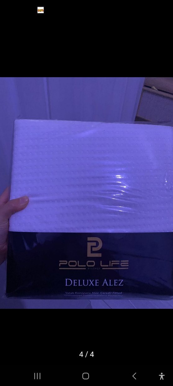 Beyaz, parlak yüzeye sahip baskılı yatak koruyucu. Polo Life markalı Deluxe Alez modeli, yatağınızı korur ve konfor sağlar. ️#alev #çarşaf #yatak #yorgan #yastık