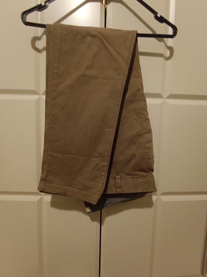 Günlük rahat kullanım için kahverengi süet kumaştan, kemerli ve normal boyda erkek pantolonu. Düz ve sade tasarıma sahiptir.