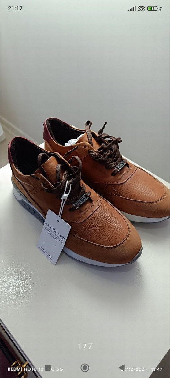 Kahverengi deri erkek günlük ayakkabı, bağcıklı ve desen içermeyen hafif tasarıma sahip. Günlük sokak stiline uygun rahat ve şık athleisure modeli. us Polo assn deri ayakkabı sıfır ürün 42 numara orijinal #uspa #deriayakkabi #poloayakkabi #uspaayakkabi #42numara