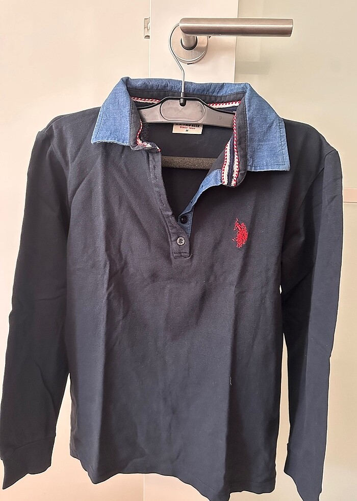 Us polo assn marka M beden yakası jean kırmızı logolu polo yaka kadın sweatshirt