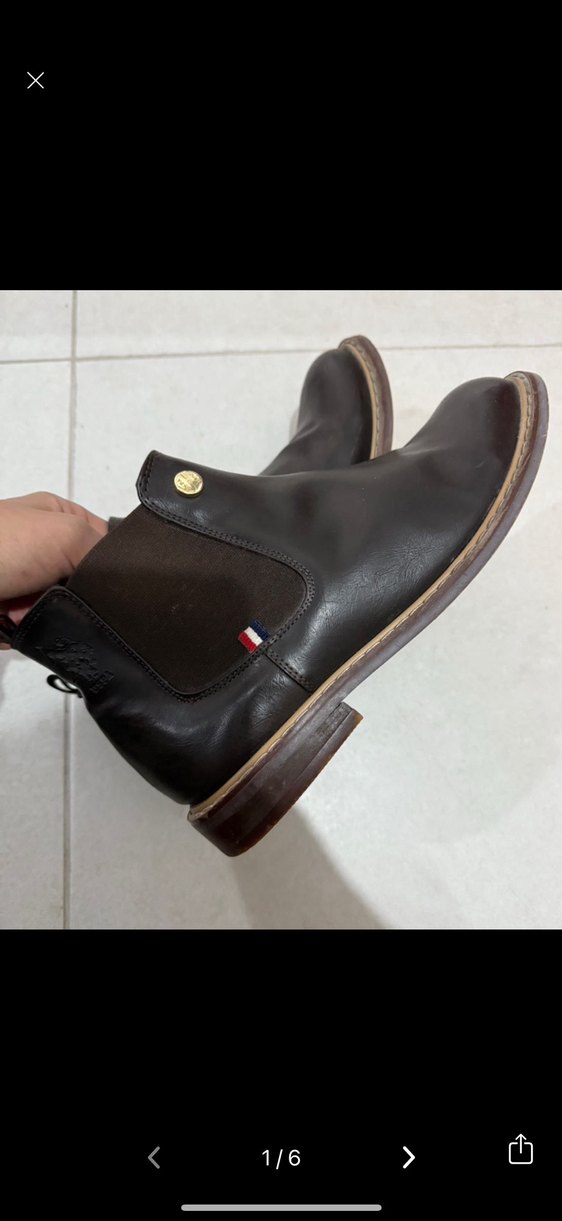 Kahverengi deri görünümlü kadın bot kaliteli dikiş ve çizgileri var.Paris tarzında gündelik sokak giyimi için uygundur. Koyu ve desensizdir.