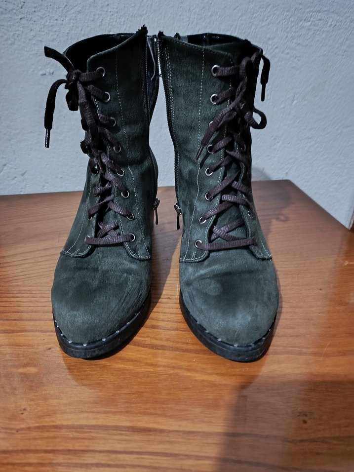 Gri süet kadın botları, yüksek topuklu ve bağcıklı tasarıma sahip. Goth tarzını yansıtan sade ve günlük kullanıma uygun model.