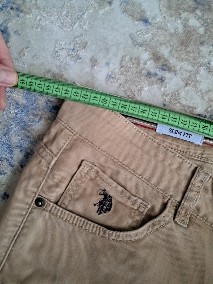 pamuklu kumaştan, bej renkli, regular fit erkek pantolon. Günlük sokak tarzı için şık ve rahat bir seçenek. sorunsuz
