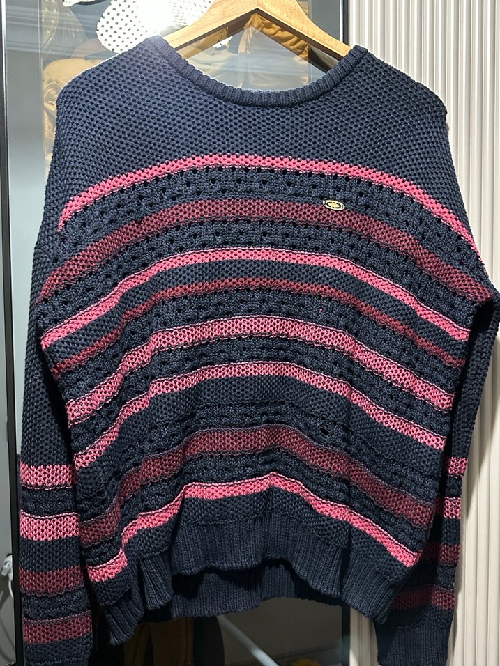 Sıfır yeni sezon harika bir kazak. Güncel fiyatına bakın lütfen. Kadınlar için uzun kollu, yuvarlak yaka, bol kesim örgü kazak. Koyu renkli çoklu çizgilerle sıcak ve rahat sokak tarzı sunar.