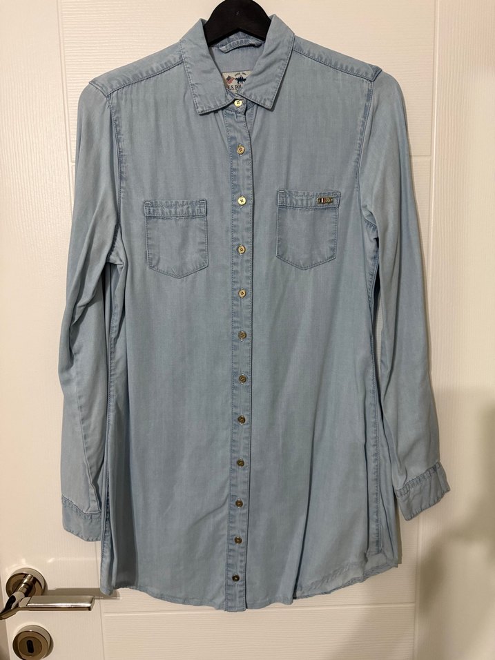 Us Polo Düğmeli Uzun Kollu Denim Gömlek