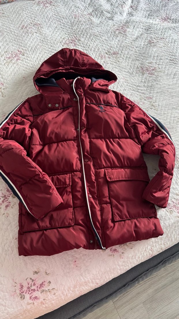 Us.polo Erkek çocuk Bordo Kapüşonlu Kışlık Mont