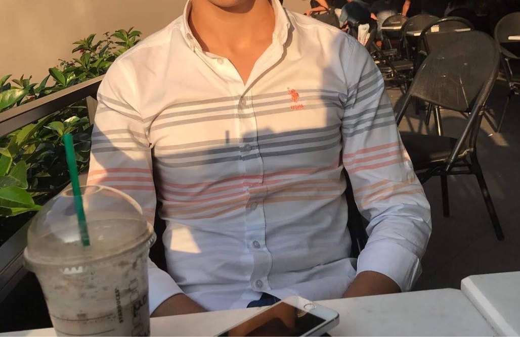 Pamuklu, düğmeli, beyaz erkek gömleği. Uzun kollu ve baskılı çizgili deseniyle günlük rahat stil için uygundur.