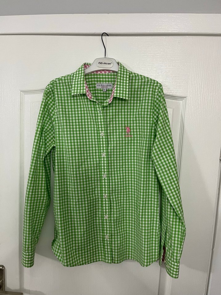 Düğmeli, yeşil ekose desenli, uzun kollu pamuklu gömlek. Normal uzunlukta, regular fit ve notched lapel yaka ile günlük sokak stili için uygun.