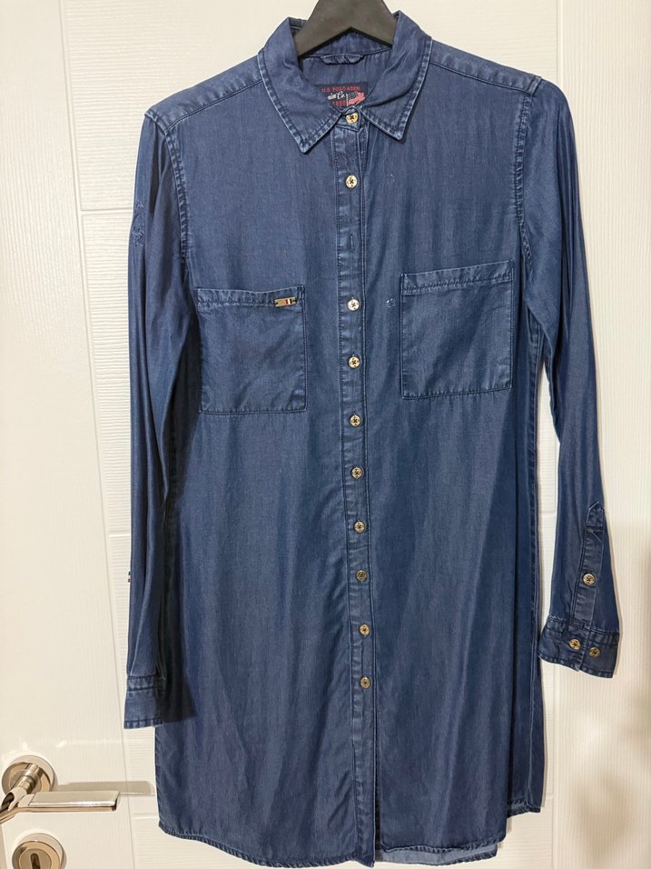 Us Polo Kadın Lacivert Denim Düğmeli Gömlek Elbise