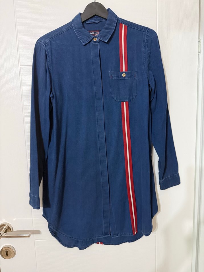 Us Polo Kadın Mavi Çizgili Denim Gömlek