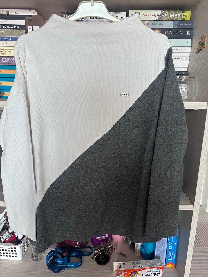US Polo pamuk kumaştan, gri tonlarında, uzun kollu, yuvarlak yakalı, bol kesim kazak. Günlük rahat kullanım için uygundur.