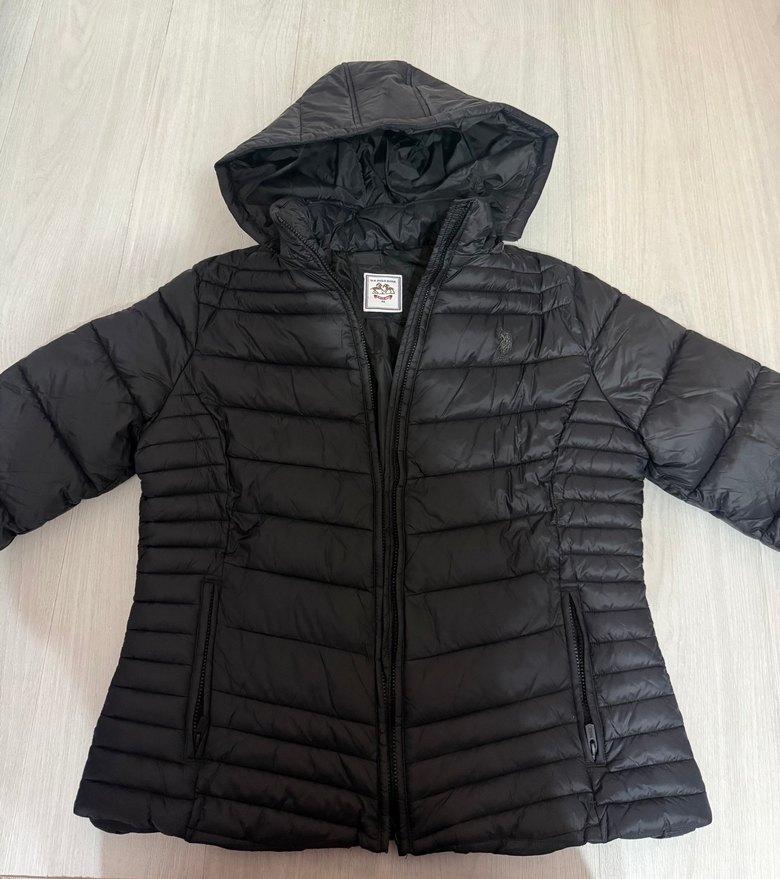 US Polo siyah Kapüşonlu mont