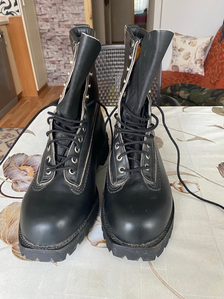 Derisi çok kalın Amerikan botlar ömür boyu eskimez yıpranmaz,topluk kısmının üstünü resimledim durmaktan boyası çıkmış başka sorunu yok,bende Redwing de var aynı kapı ve model bu botlar onların muadili ama ordu için imal edilmiş botlar.içten içe boyu 28,5cm