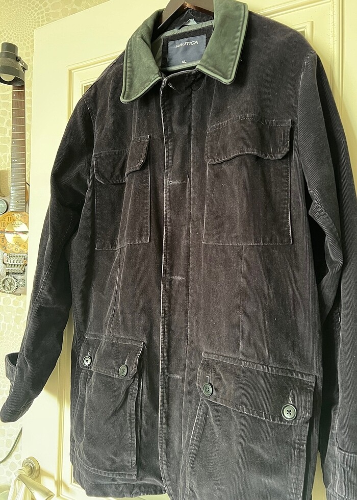 Nautuca country carchart model ..en fazla 5-6 kere kullanıldı, renkte solma yada hata yok resımlerde kadıfe olduğu için bu sekılde çıkmış ..yakası Orjınal deri olan hatasız lacivert mor arası kadife tarz ceket mont.ıkı koltuk arası 64-65 cm boy enseden 80 cm