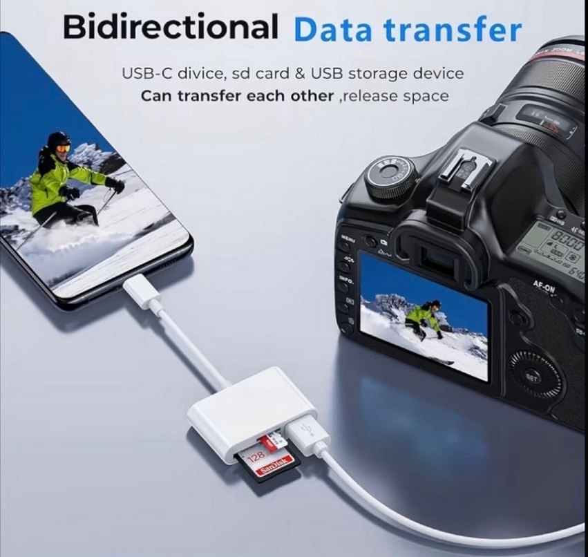 USB-C cihazlar, SD kart ve USB depolama arasında veri aktarımı sağlayan beyaz adaptör, alan boşaltma ve karşılıklı transfer imkanı sunar. yanlış ürünü almışım. denemek için kullanıldı ancak benim telefonum lightning girişli olduğu için kullanamıyorum şimdi. hiçbir sorun yok aşırı kullanışlı bir ürün küçük zaten yer kaplamıyor